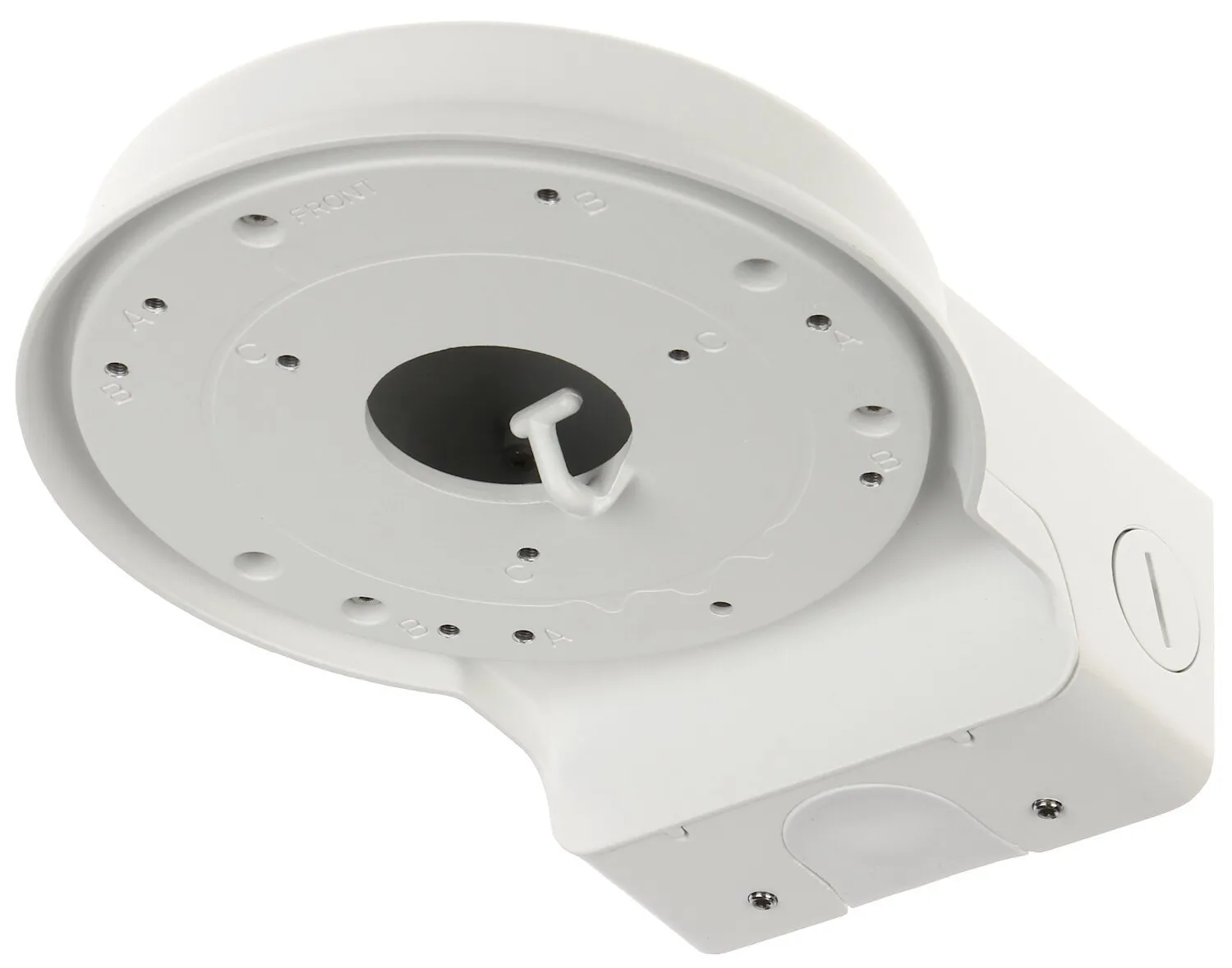Uchwyt ścienny Dedykowany do kamer kulistych. Można montować na nim kamery wandaloodporne Posiada bardzo przydatną możliwość ukrycia kabli i złącz wychodzących z kamery.