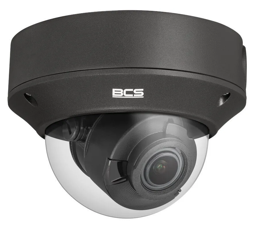 BCS-P-DIP45VSR4-G to kamera kopułowa IP z zintegrowanym sensorem CMOS o wymiarach 1/2.7" i wykorzystująca bezprzelotowy system skanowania obraz – Progressive Scan. Kamera podczas narywania i obserwacji wykorzystuje wysoką rozdzielczość 5 Mpx - 2880 × 1620 pikseli, aby jak najlepiej zachować szczegółowość nagrań oraz zdalny pogląd. Urządzenie posiada bardzo dokładny regulowany obiektyw do 12 mm z przesłoną F1.6, co więcej oferuje doskonałą czułość na poziomie 0,003 luksa w kolorze. Producent BCS Point w modelu BCS-P-DIP45VSR4-G zastosował następujące możliwe do użycia kompresje: H.265+, H.265, H.264+ lub H.264. Kamera potrafi zapewnić doskonałą widoczność obiektów w całkowitej ciemności poprzez zintegrowany w niej oświetlacz IR o zasięgu do 40 metrów.