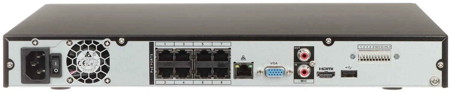 | Switch PoE: | Wbudowany 8-portowy switch PoE, 25.5 W / Kanał - PoE (802.3af/at) |