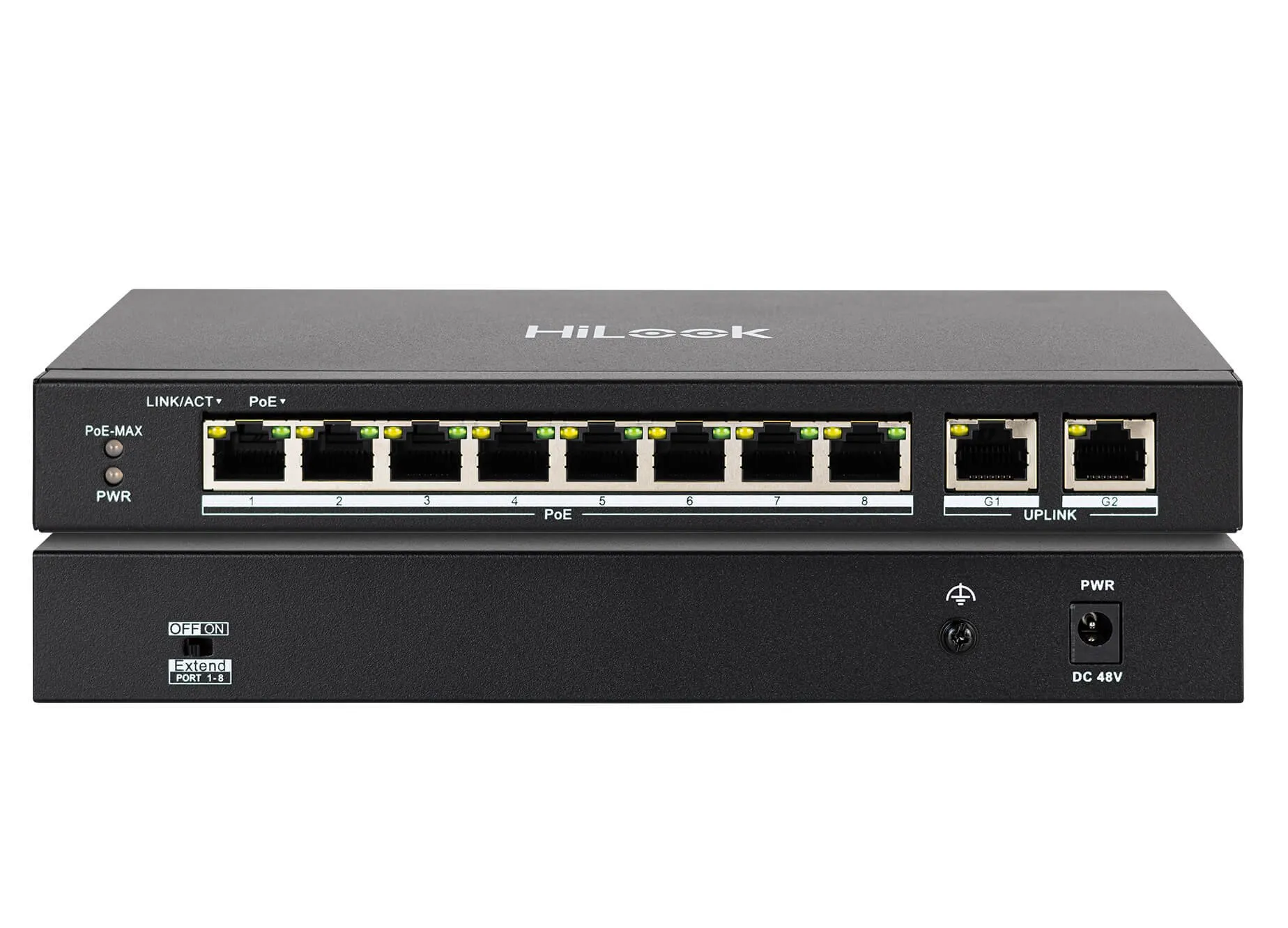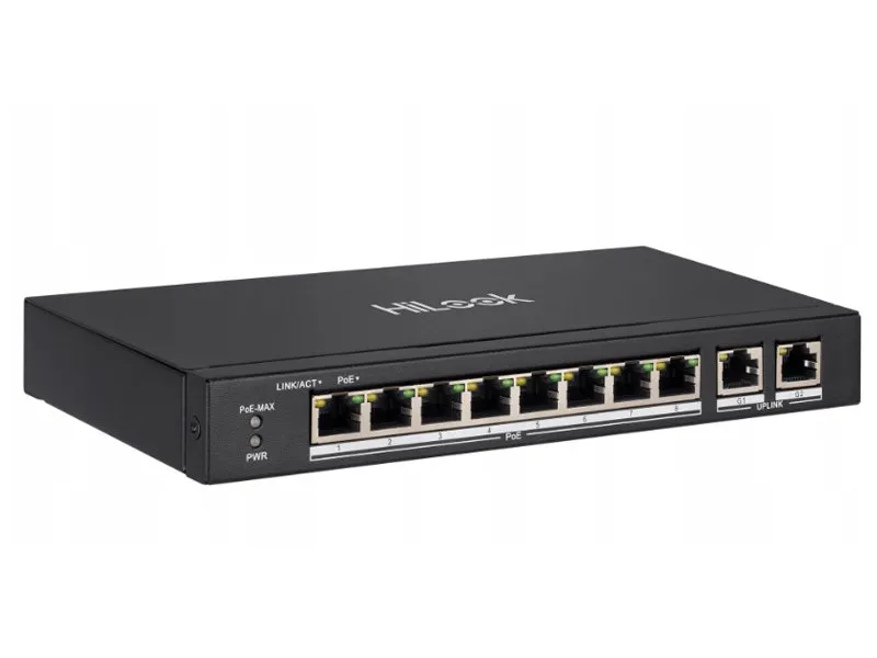 Switch oferuje 10 portów, z czego 8 portów PoE (Power over Ethernet) umożliwia zasilanie urządzeń sieciowych takich jak kamery IP, telefony VoIP i punkty dostępu Wi-Fi bez potrzeby stosowania dodatkowych kabli zasilających. Dwa porty Uplink 10/100/1000 Mbps zapewniają szybkie i stabilne połączenia z siecią główną.