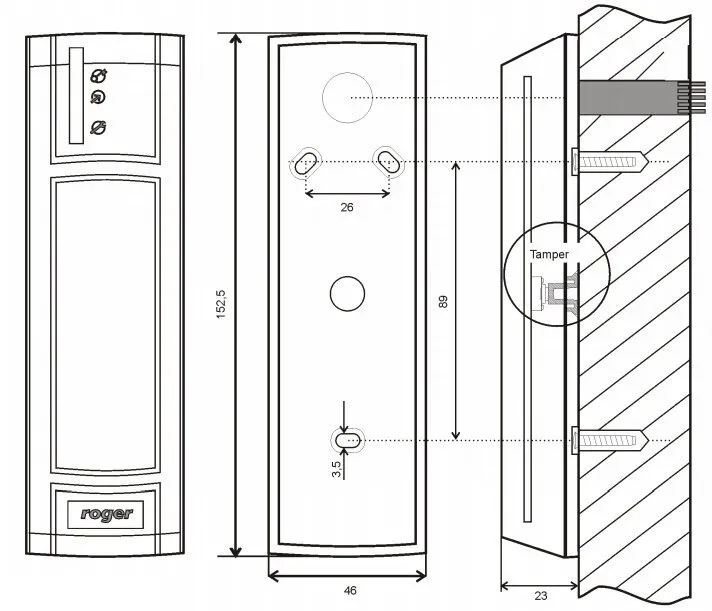 | Ochrona antysabotażowa (TAMPER) | Otwarcie obudowy raportowane metodą programową do kontrolera dostępu |