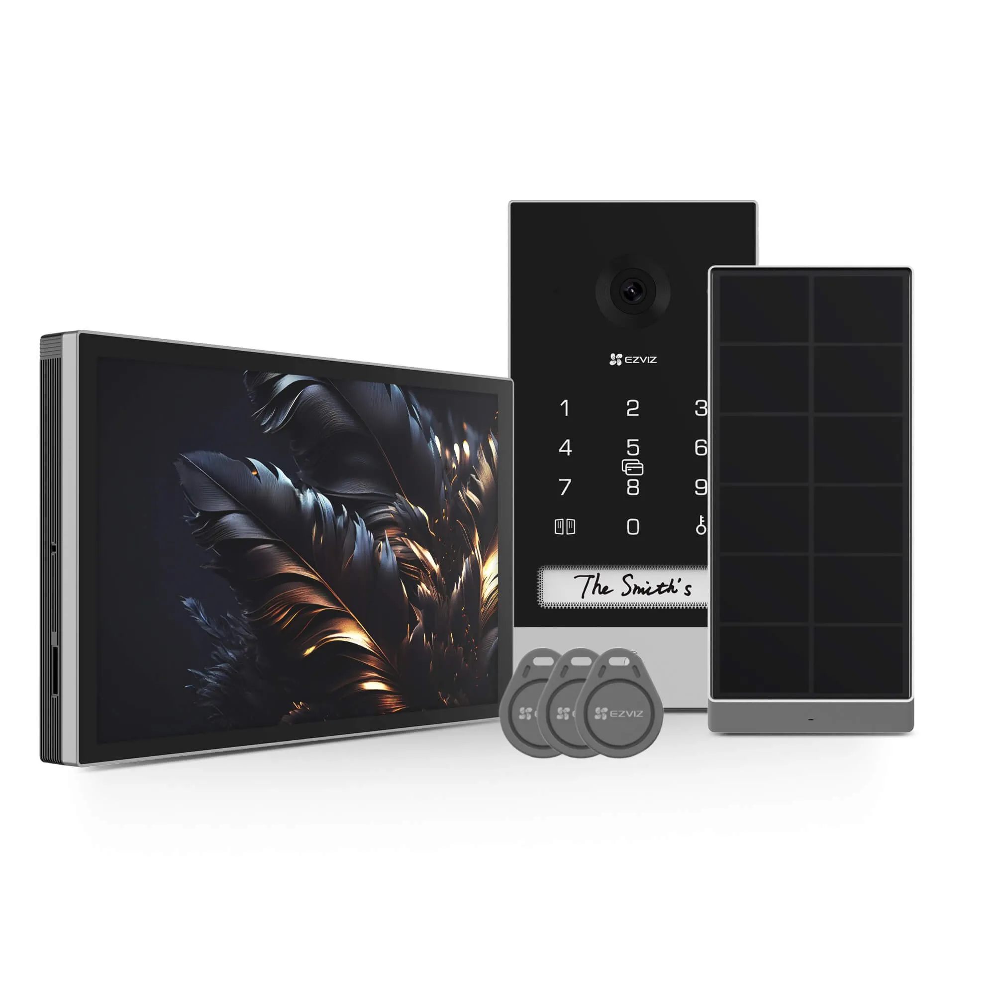 Idąc krok dalej z wizją idealnego wideodomofonu, EZVIZ przedstawia EP7 - nową innowację połączoną z klawiaturą, wymienną baterią, panelem słonecznym i wzmocnioną stabilnością łączności z sieciami Wi-Fi - ta kombinacja sprawia że okablowanie pomiędzy monitorem wewnątrz a domofonem na zewnątrz, jest całkowicie niepotrzebne. Eleganckie urządzenia EP7 łączą się ze sobą, tworząc wiele inteligentnych funkcji mających na celu bezpieczeństwo domu oraz wyjątkową łatwość na każdym poziomie: od instalacji przez codzienną obsługę aż po zasilanie. EP7 poszerza granice w dziedzinie wideodomofonów - Nowoczesny, ekologiczny i elegancko wykonany, podnosi jakość domowego życia.