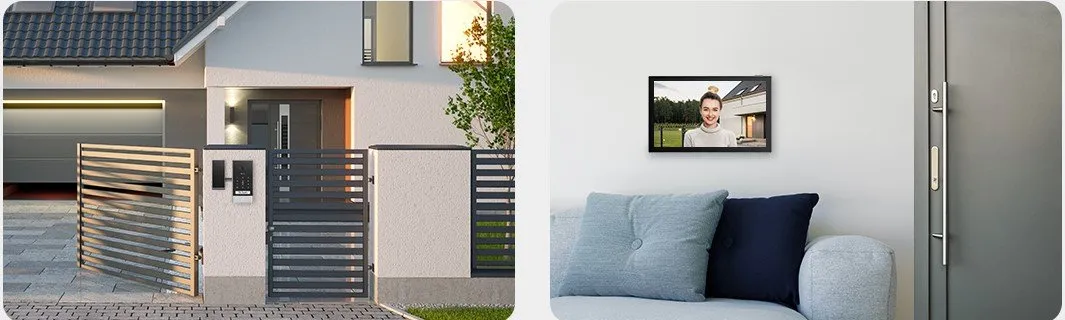 Dotykowy ekran 7 cali jest głównym panelem sterowania - umożliwia dostosowanie ustawień bramofonu, ułatwia komunikację na odległość oraz przechowywanie zdjęć i nagrań wideo wyzwalanych wykrytym ruchem. Po naciśnięciu dzwonka do drzwi, ekran wewnętrzny wyświetli obraz z zewnątrz by od razu zobaczyć kto czeka.